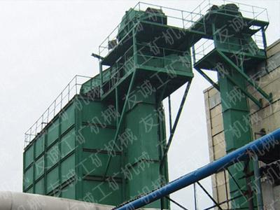 斗鏈裝置由料斗和套筒滾子鏈組成。分單鏈和雙鏈兩種布置型式,頭部驅動裝置設置逆止器,逆止可靠。卸料口裝有防回橡膠板,中間節(jié)裝有軌道以防止牽引鏈條在工作中擺動。設備的進出料口、提升高度均可根據(jù)現(xiàn)場工藝要求靈活布置。